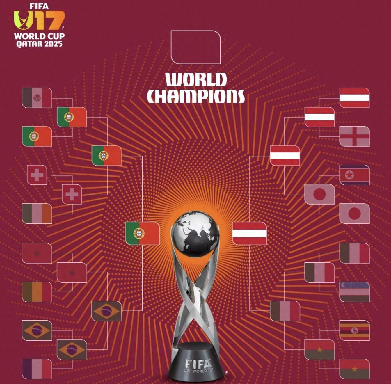 在另一场半决赛中,奥地利队以2比0的比分击败了意大利队,杀入决赛。比赛的最后阶段,意大利队的两名球员博拉西奥和伊纳西奥因犯规被先后红牌罚下。葡萄牙队将在决赛中面对的是本届赛事至今保持全胜纪录的奥地利队。无论最终谁能捧起奖杯,都将是各自国家队历史上首座U17世界杯冠军。个人层面,奥地利边锋莫泽以9粒进球领跑射手榜,葡萄牙前锋阿尼西奥以6球紧随其后。